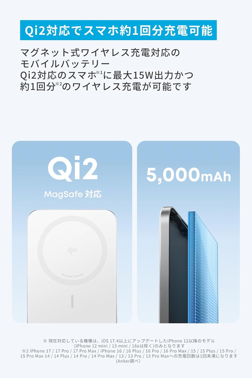 Anker Nano Power Bank (5000mAh, MagGo, Slim) ホワイト