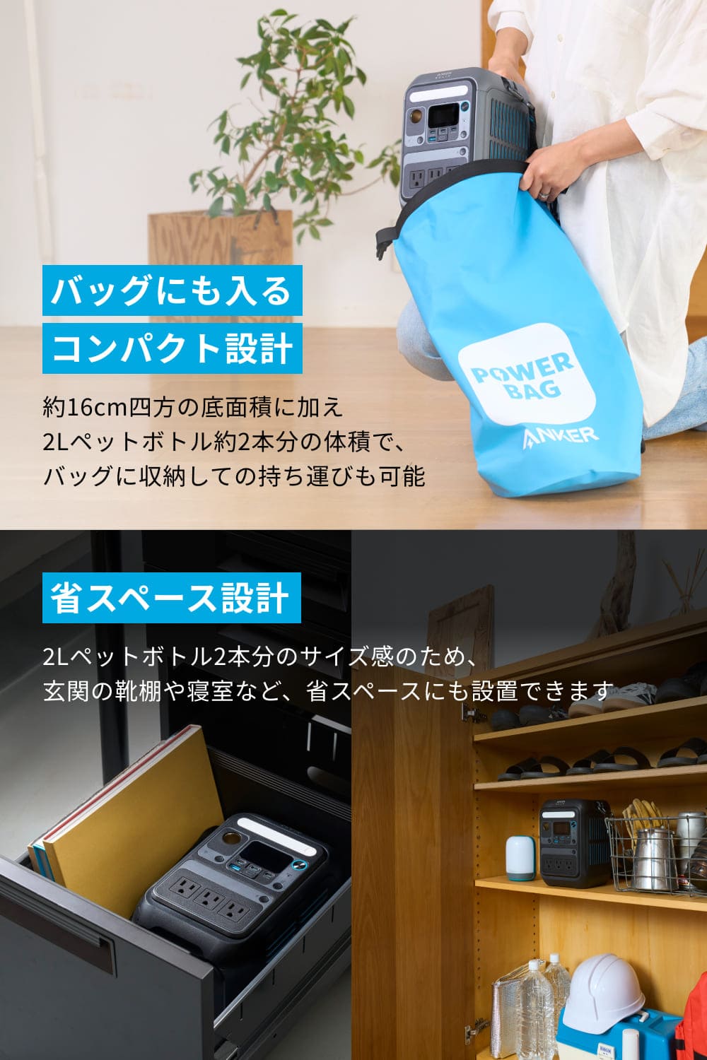 製品本体、AC充電ケーブル、ストラップ、安全マニュアル