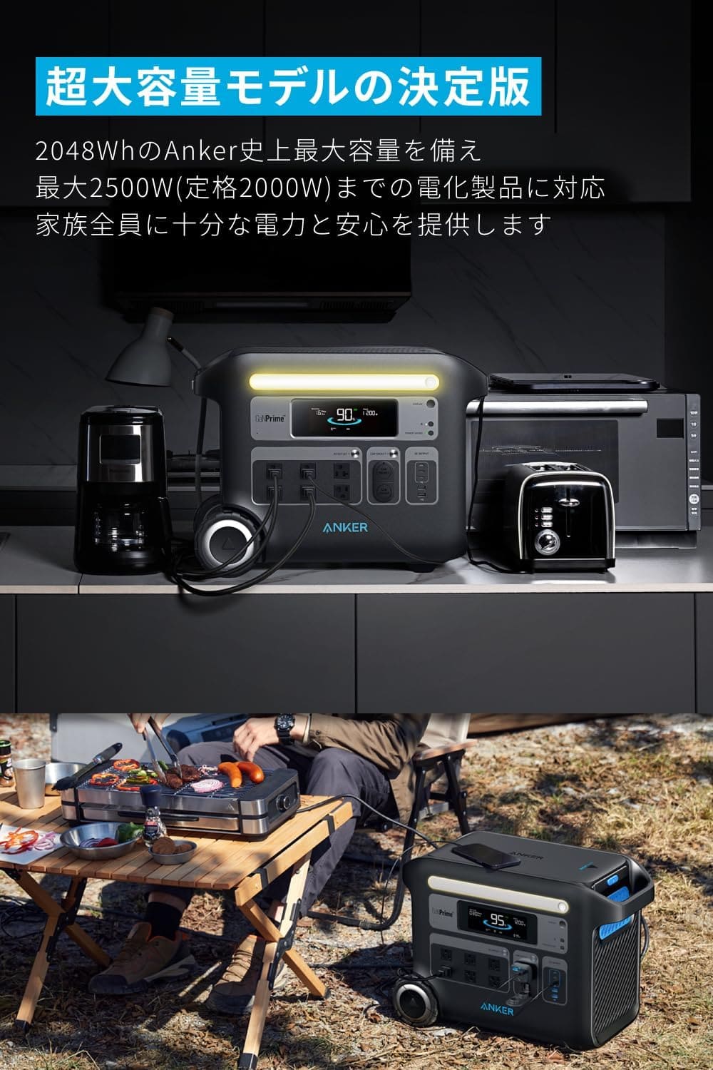 ▼パッケージ内容AnkerSolixF2000PortablePowerStation(GaNPrimePowerHouse2048Wh)、AC充電ケーブル、ソーラー充電ケーブル、シガーソケット充電ケーブル、アクセサリ収納バッグ、取扱説明書、最大5年間の特別長期保証(※正規販売店からの注文に限り18ヶ月保証の対象となり、条件付きで+42ヶ月の延長保証が付きます。注文番号が保証書の代わりとなります。)、カスタマーサポート
