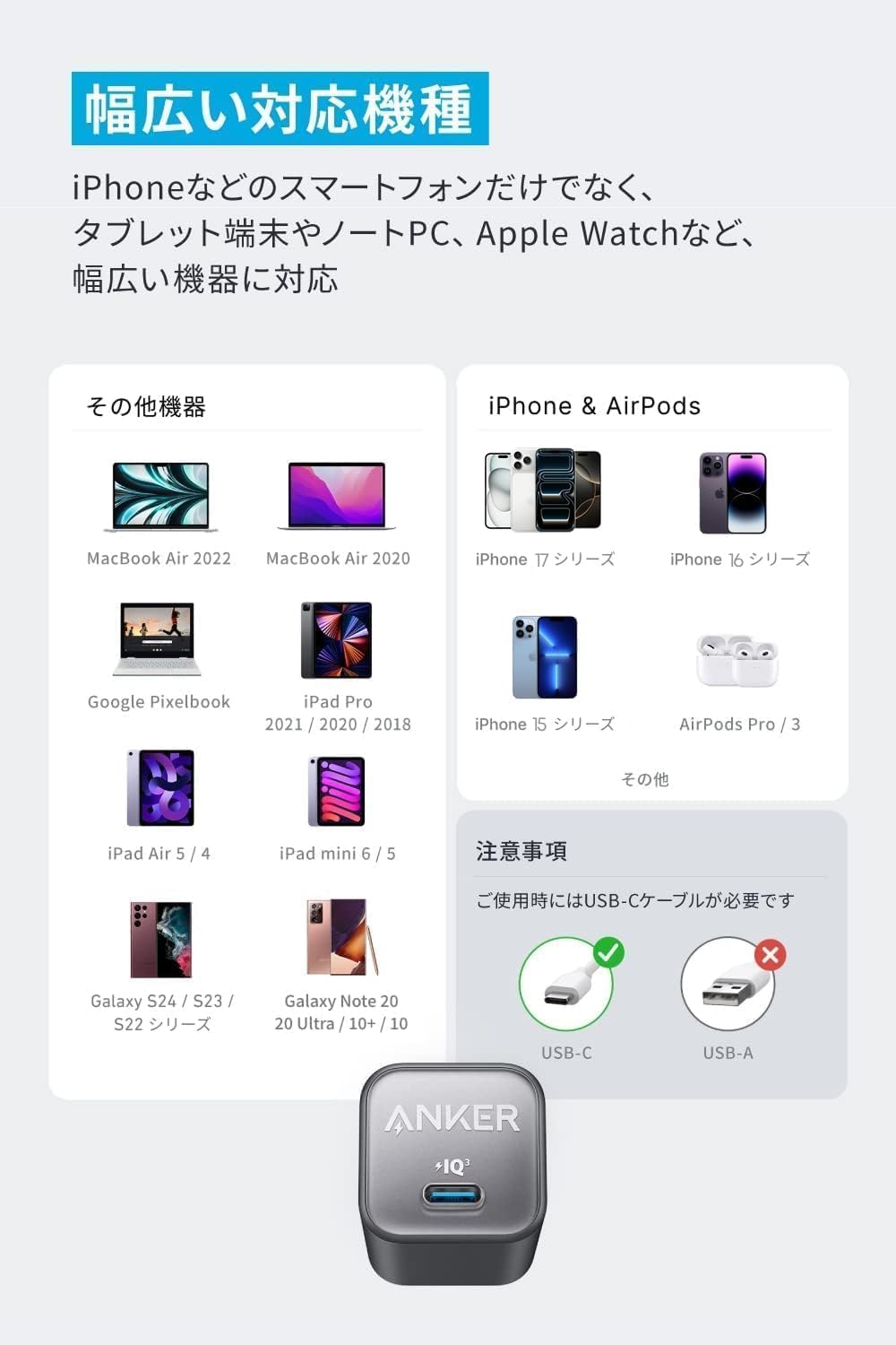 ▼パッケージ内容Anker511Charger(Nano3,30W)、取扱説明書、最大30ヶ月保証(※正規販売店からの注文に限り24ヶ月保証の対象となり、条件付きで+6ヶ月の延長保証が付きます。注文番号が保証書の代わりとなります。)、カスタマーサポート