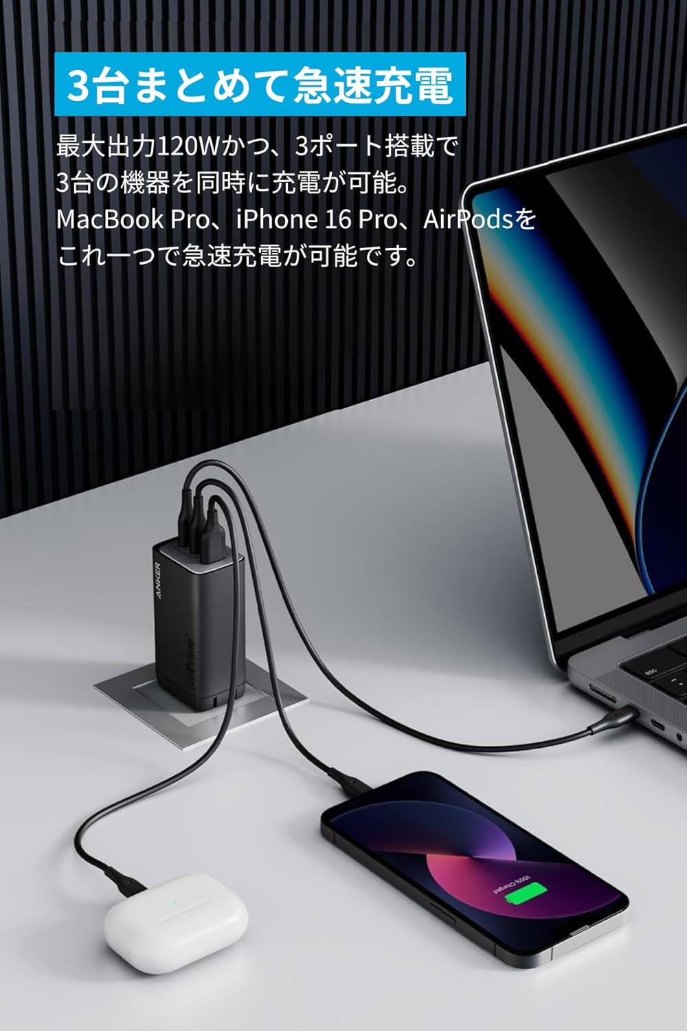 USB-C(上部)+USB-A:合計最大120W