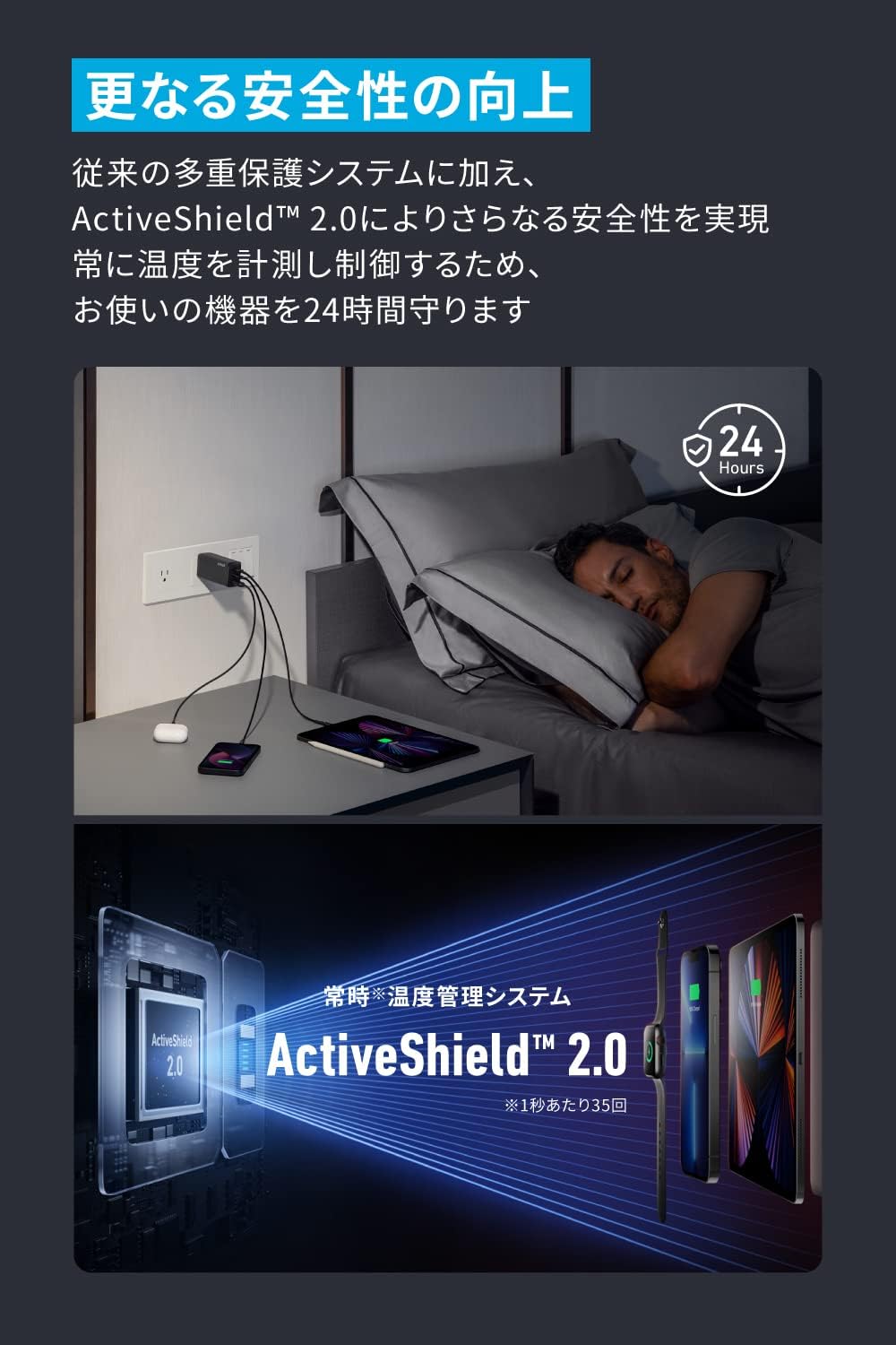 Anker737(GaNPrime120W)、取扱説明書、最大30ヶ月保証(※正規販売店からの注文に限り24ヶ月保証の対象となり、条件付きで+6ヶ月の延長保証が付きます。注文番号が保証書の代わりとなります。)、カスタマーサポート