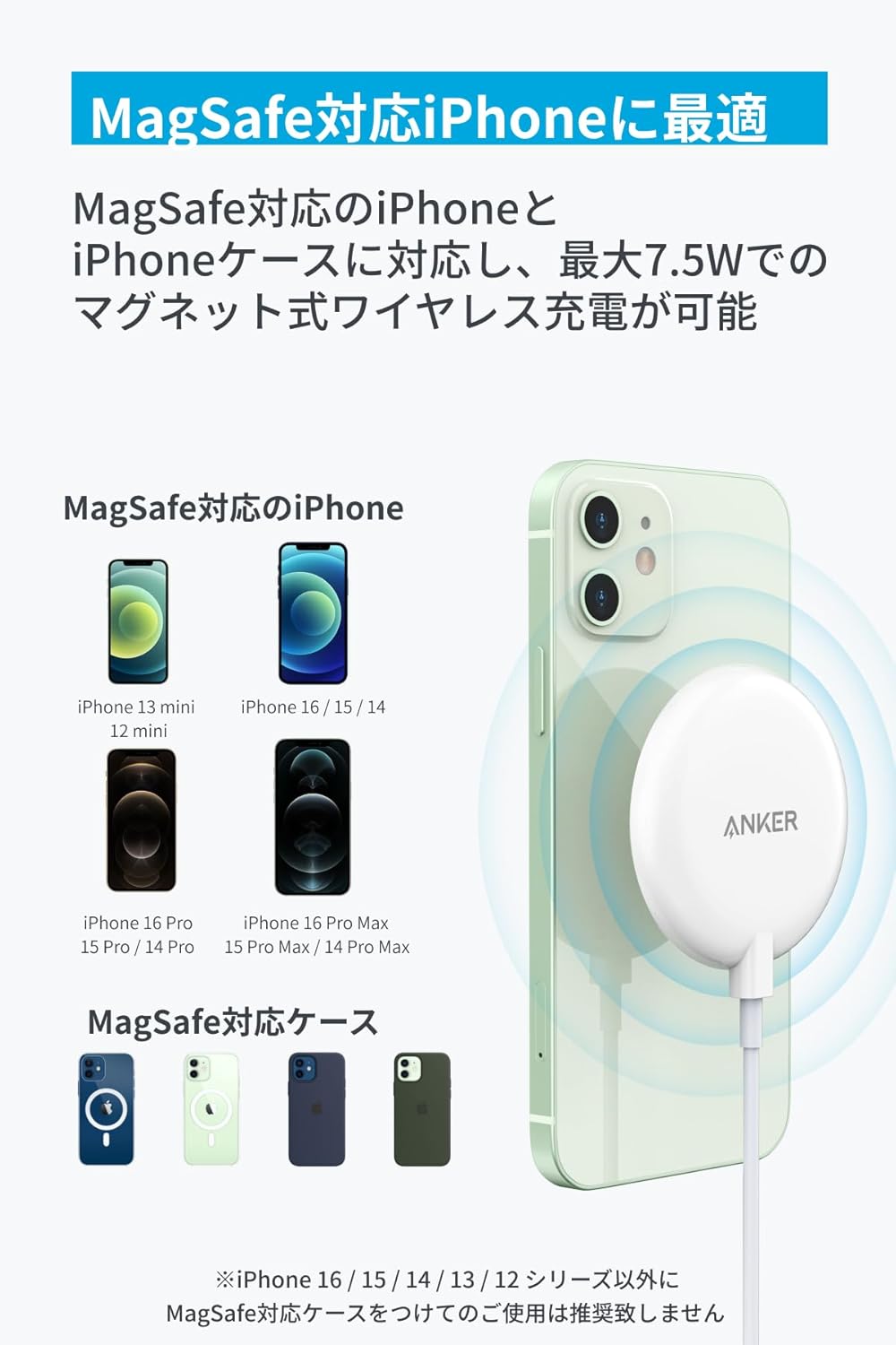 ▼パッケージ内容AnkerPowerWaveMagneticPadLite、取扱説明書、クイックスタートガイド、最大24ヶ月保証(※正規販売店からの注文に限り18ヶ月保証の対象となり、条件付きで+6ヶ月の延長保証が付きます。注文番号が保証書の代わりとなります。)、カスタマーサポート
