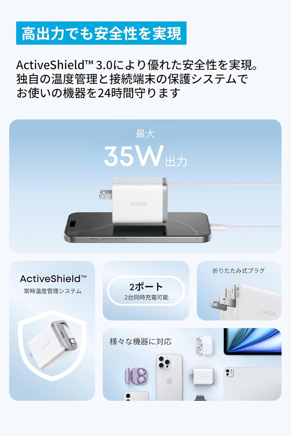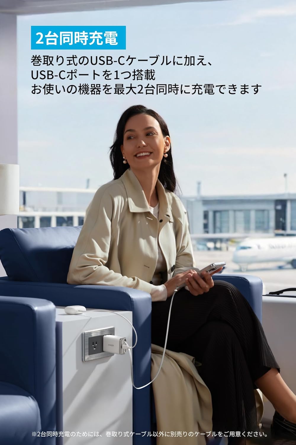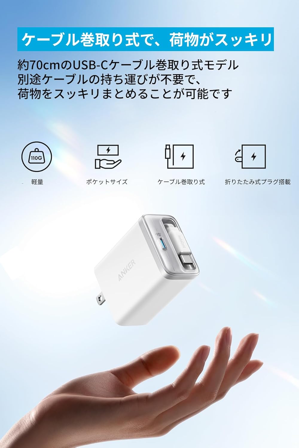 Anker Nano Charger (35W, 巻取り式 USB-Cケーブル) ホワイト