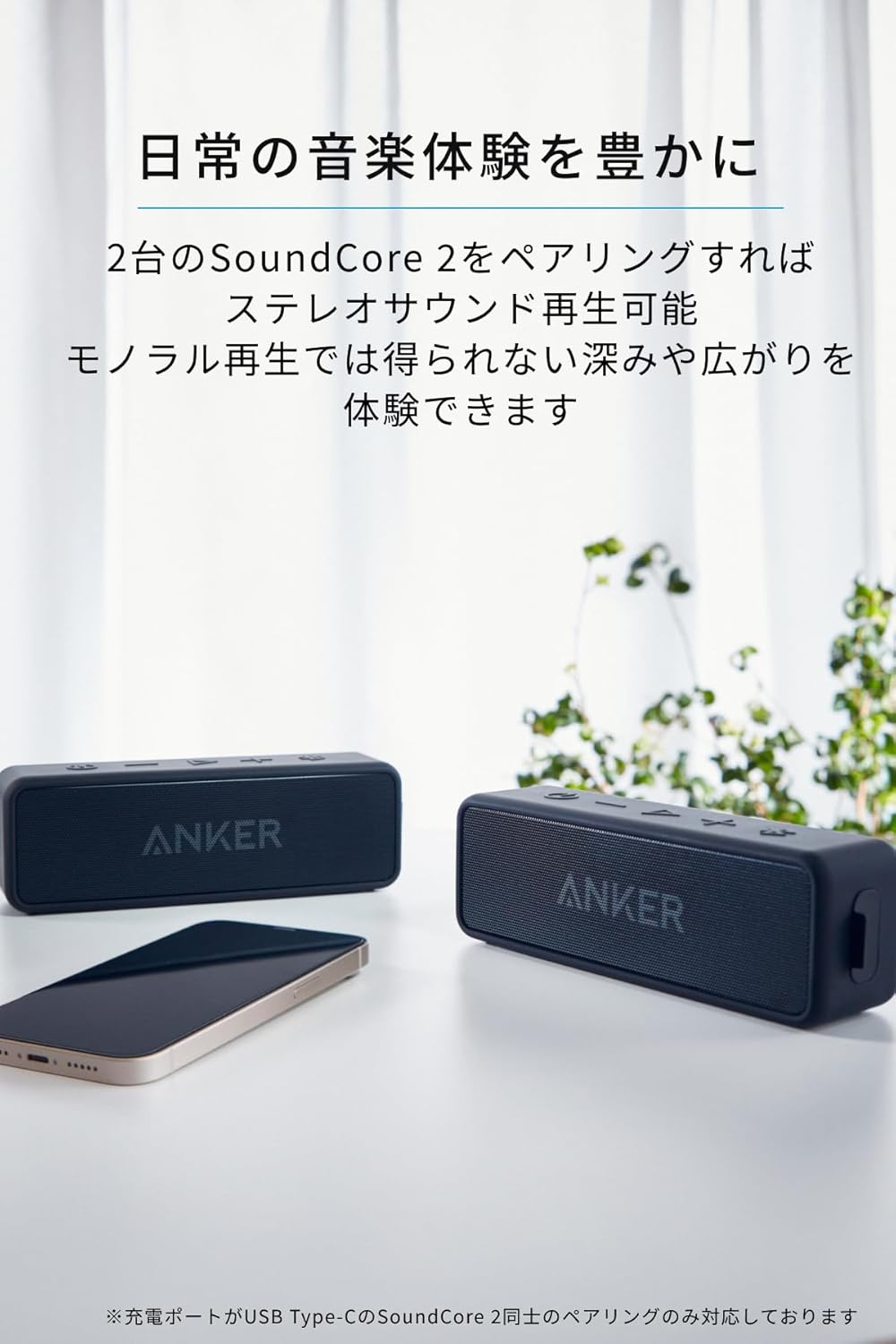 AnkerSoundCore2、USB-C&USB-Cケーブル、取扱説明書、カスタマーサポート技適マーク認証済み商品(周波数帯:2402MHz~2480MHz)