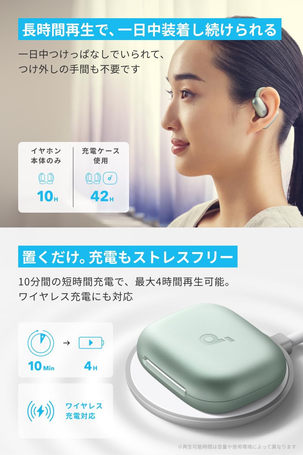 ▼再生可能時間 (イヤホン/充電ケース)