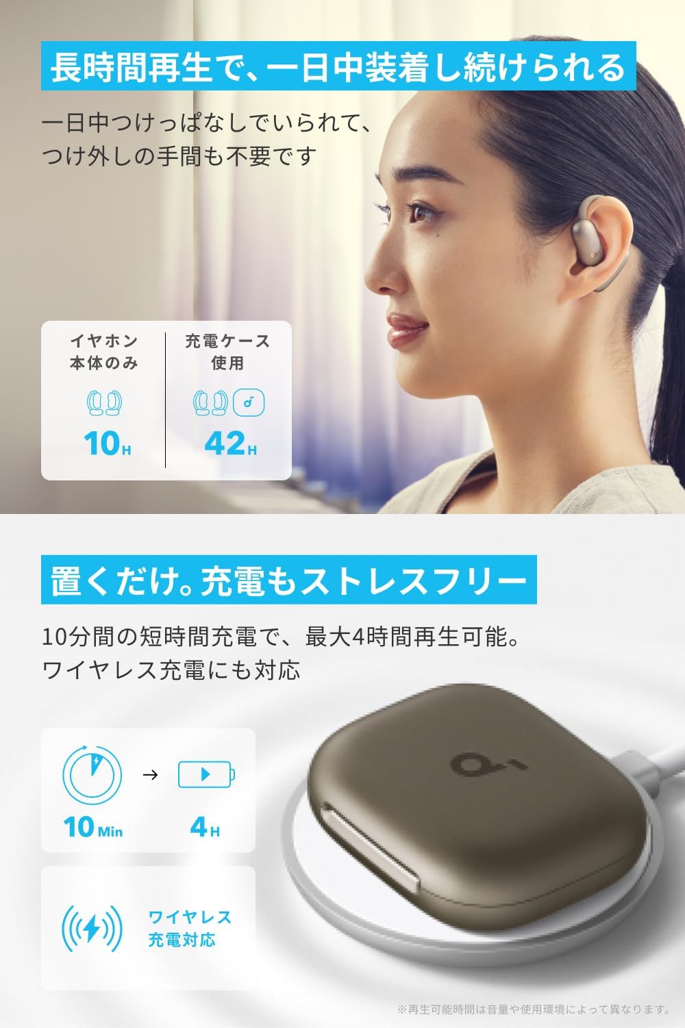 ▼再生可能時間(イヤホン/充電ケース)