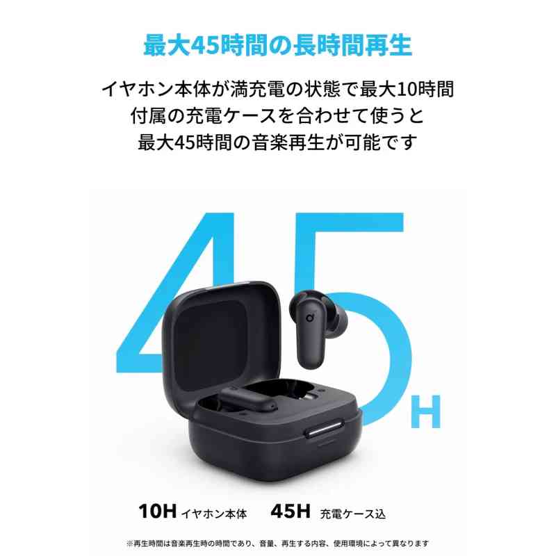 ・通常モード:最大10時間(イヤホン本体のみ)/最大45時間(充電ケース使用時)