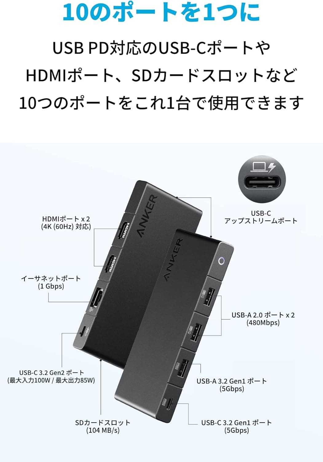 Anker 364 USB-C ハブ (10-in-1, Dual 4K HDMI)