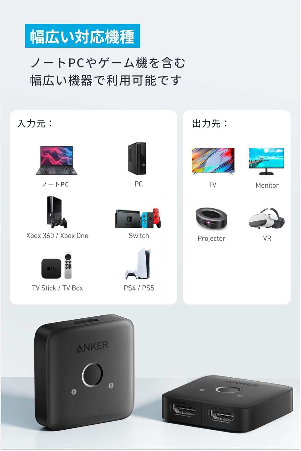 AnkerHDMISwitch(2-in-1Out,4KHDMI)、取扱説明書、カスタマーサポート