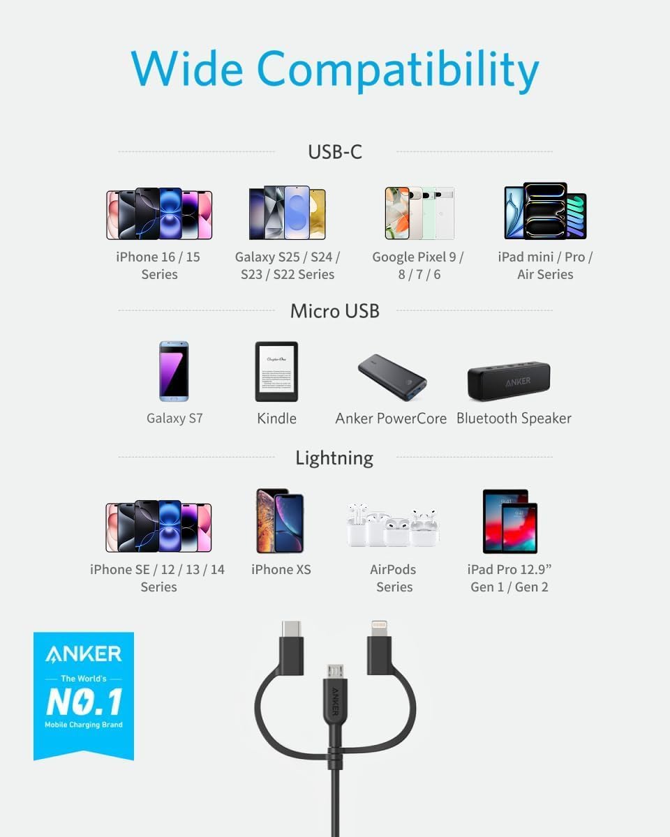 Anker PowerLine II 3-in-1 ケーブル(0.9m ブラック)