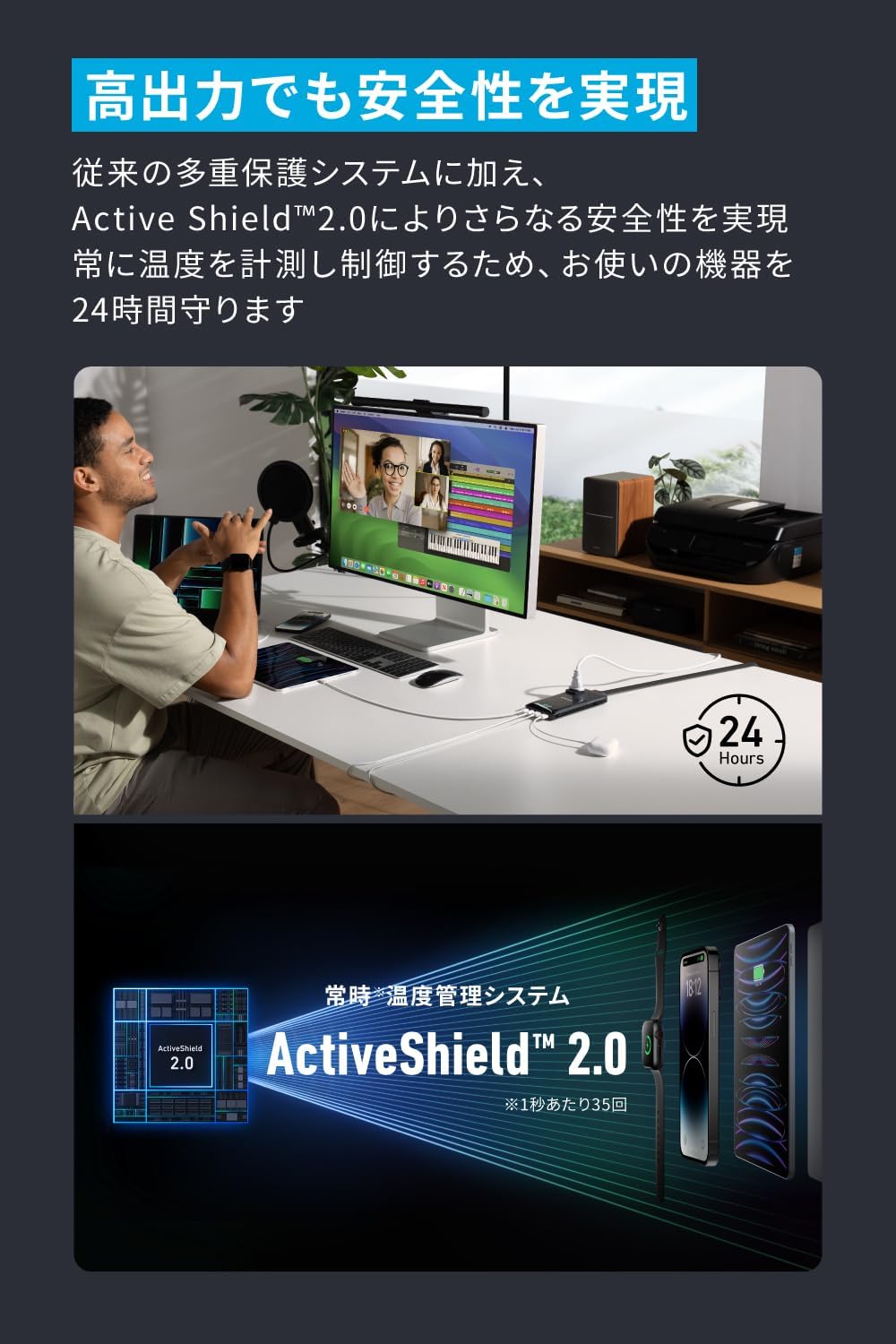 USB-C1+USB-C2+USB-A1+A2出力:MAX65W+MAX60W+MAX15W(MAX140W)
