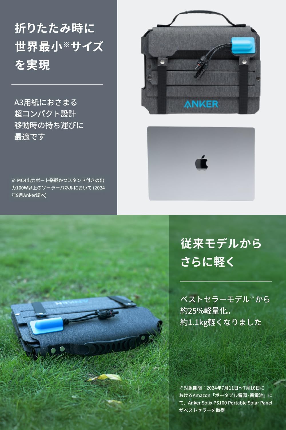 AnkerSolixC1000Gen2PortablePowerStation、シガーソケット充電ケーブル、AC充電ケーブル、AnkerSolixPS100CompactPortableSolarPanel、MC4&XT-60ケーブル(0.5m)、MC4&MC4延長ケーブル(3m)x2クイックスタートガイド、安全マニュアル