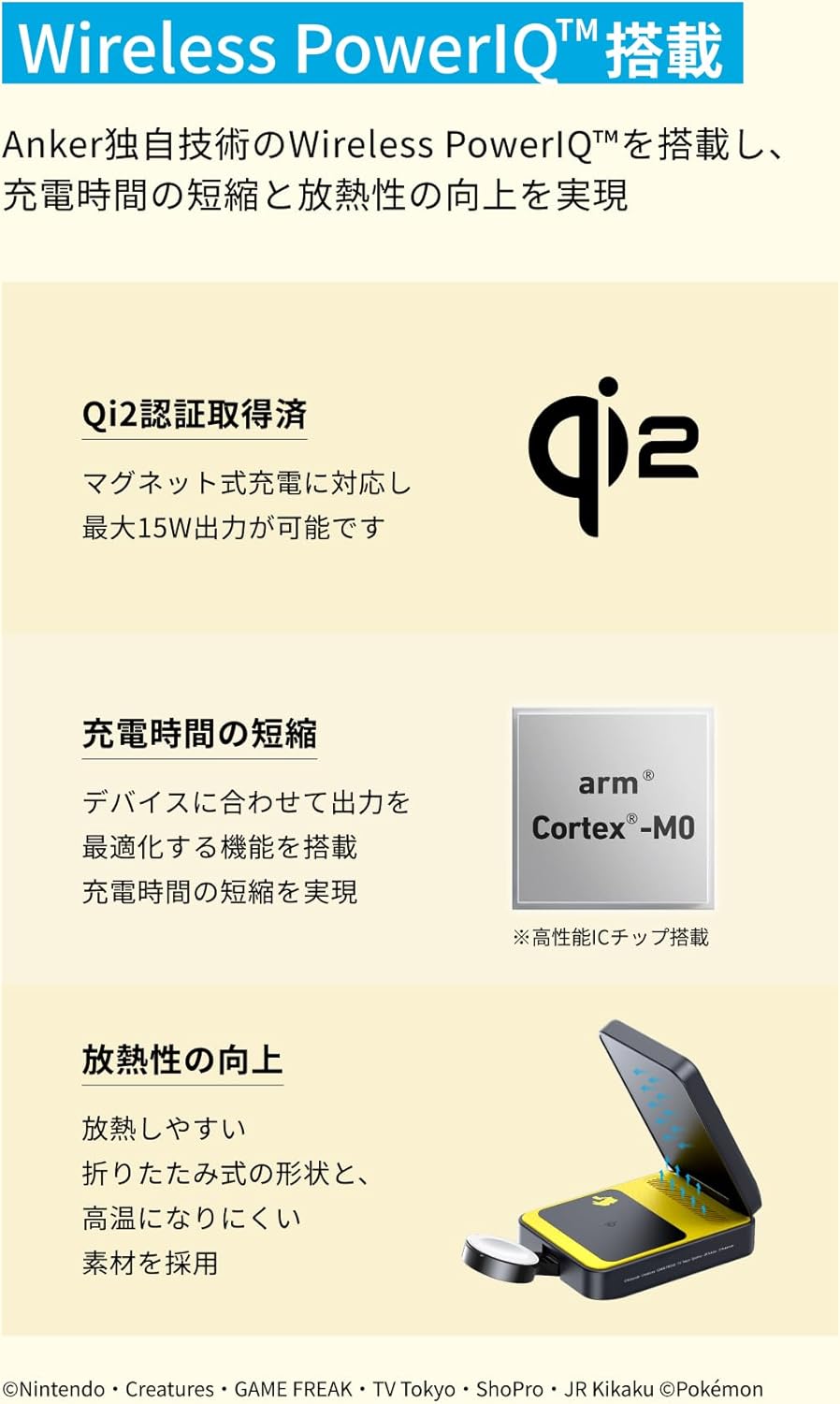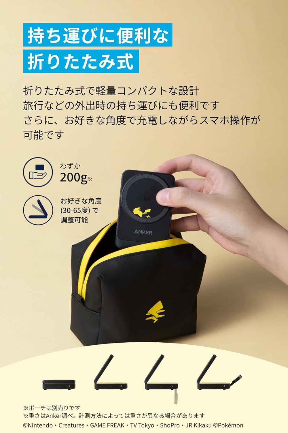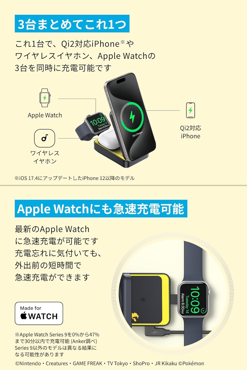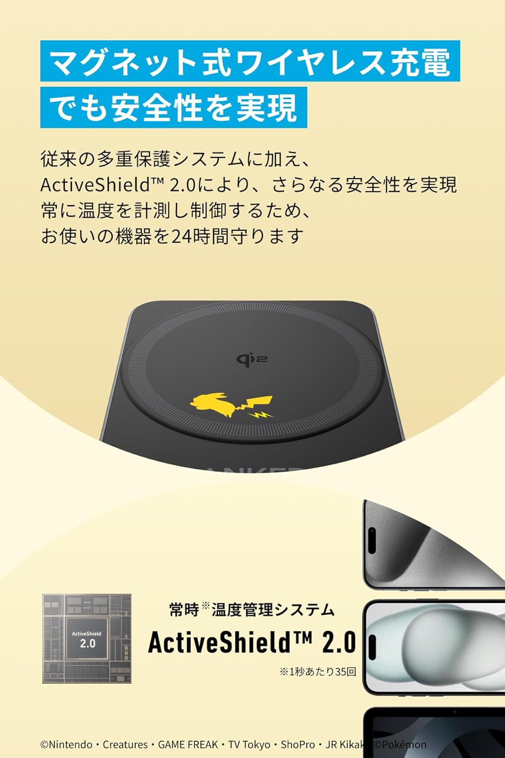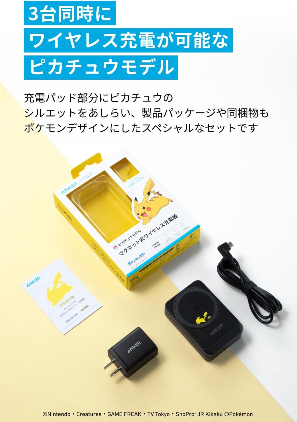 Anker マグネット式ワイヤレス充電器 ピカチュウモデル Qi2対応 マグネット式 3-in-1 ワイヤレス充電ステーション