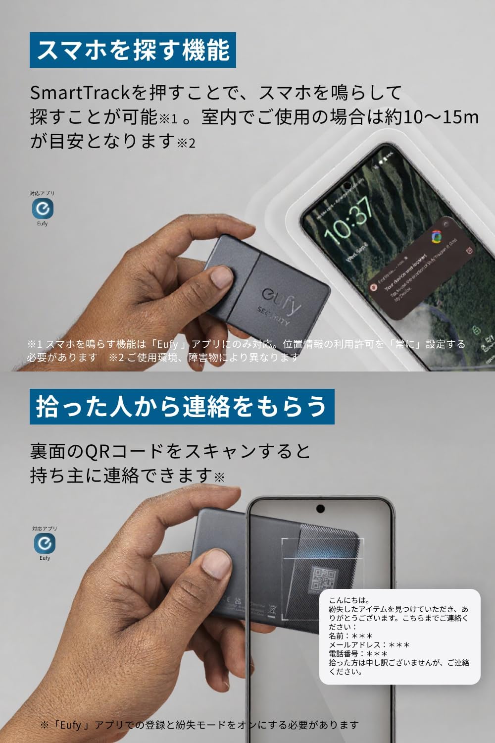 EufySmartTrackCard、メタルクリップ、クイックスタートガイド、安全マニュアル、カスタマーサポート