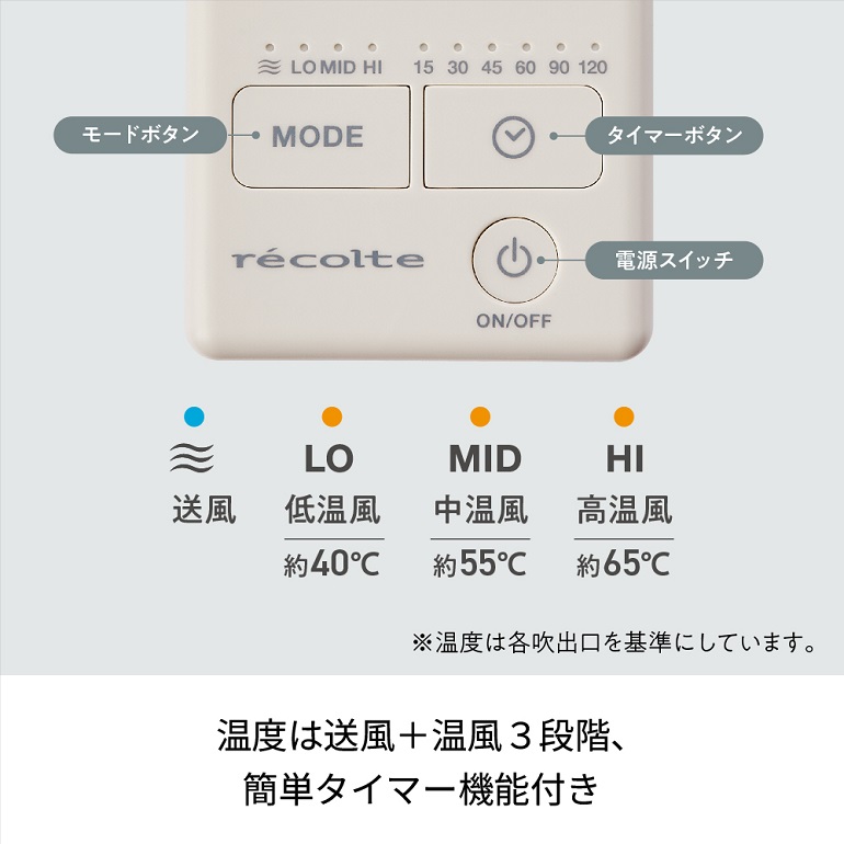 タイマーは15分、30分、45分、60分、90分、120分の6段階の設定で、用途に合わせて幅広くご使用いただけます。