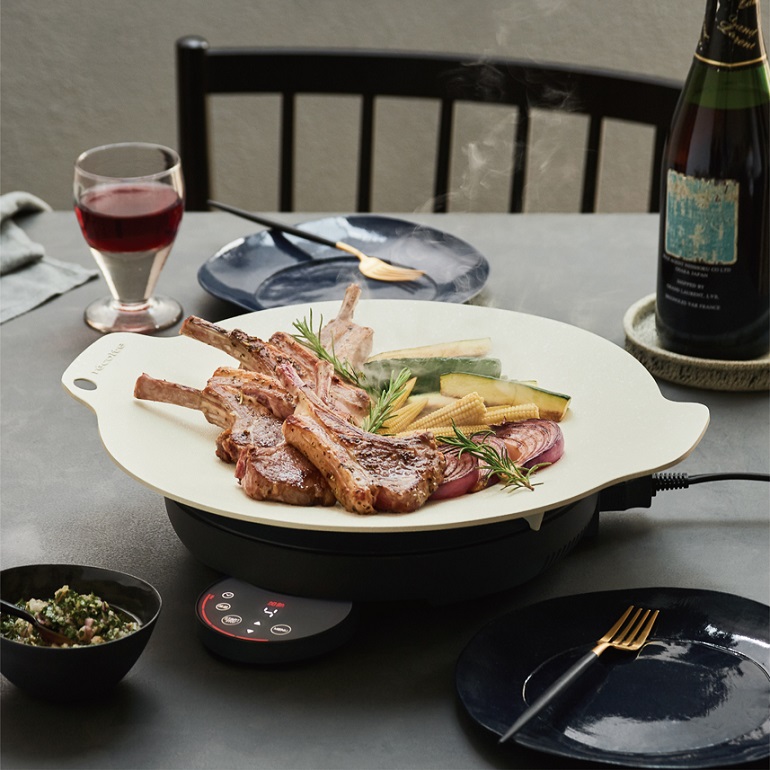 調理できる大皿【クッキンググリドルプレート】と円形フォルムの【卓上IHヒーター】をセットにしました。