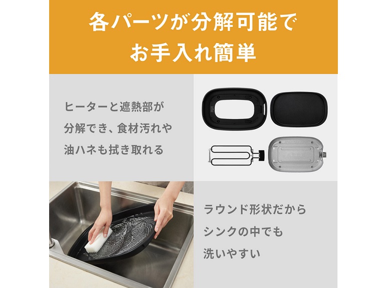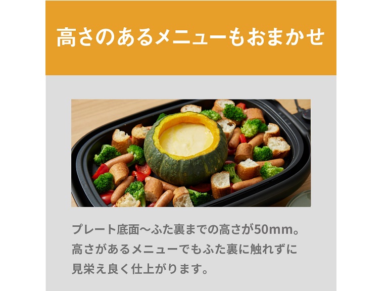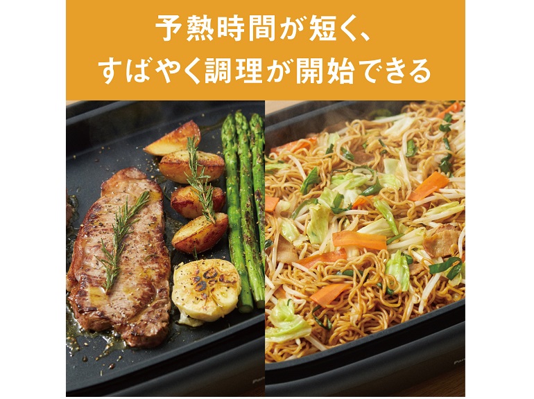 プレート全体での温度差を軽減し、食材をよりおいしく焼き上げます。