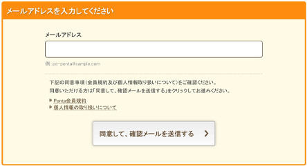 PontaWEBでPontaに登録のメールアドレスを入力してください