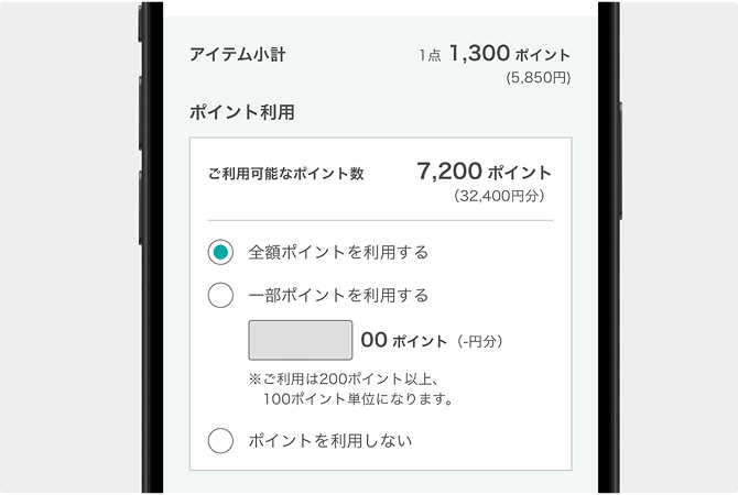 ポイントが足りない場合は、クレジットカードを併用してご購入いただけます(※2)。