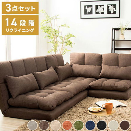 ソファ ふっくらコーナーソファ3点セット 14段階 リクライニング ファブリック レザー ソファ グレー