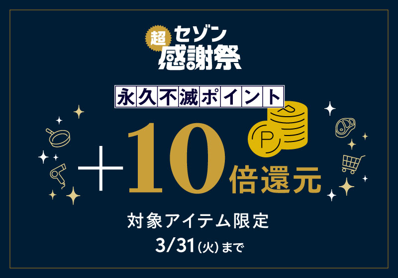 期間中に対象商品をご購入いただいた方に、永久不滅ポイントを基本還元率*の10倍還元いたします。